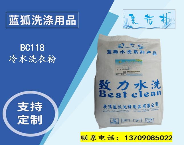 藍(lán)狐洗滌用品系列—BC118冷水洗衣粉,性質(zhì)溫和,泡沫適中,去污力強(qiáng),使用家用和工業(yè)場(chǎng)合的棉麻,絲毛等衣物的洗滌
